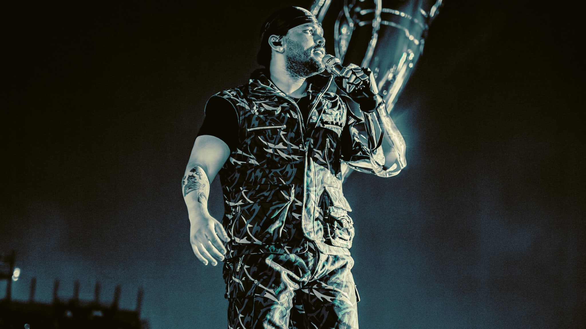 Abel Tesfaye’s Bogotá show followed his concert in Monterrey, Mexico last week, which saw the debut performance of "Circus Maximus,” his latest collaboration from Travis Scott’s Utopia album. Prior to the song’s premiere, The Weeknd played a medley of hit songs that he guested on, including Rosalía’s “La Fama,” Kanye West’s “Hurricane,” and Future’s “Low Life.”